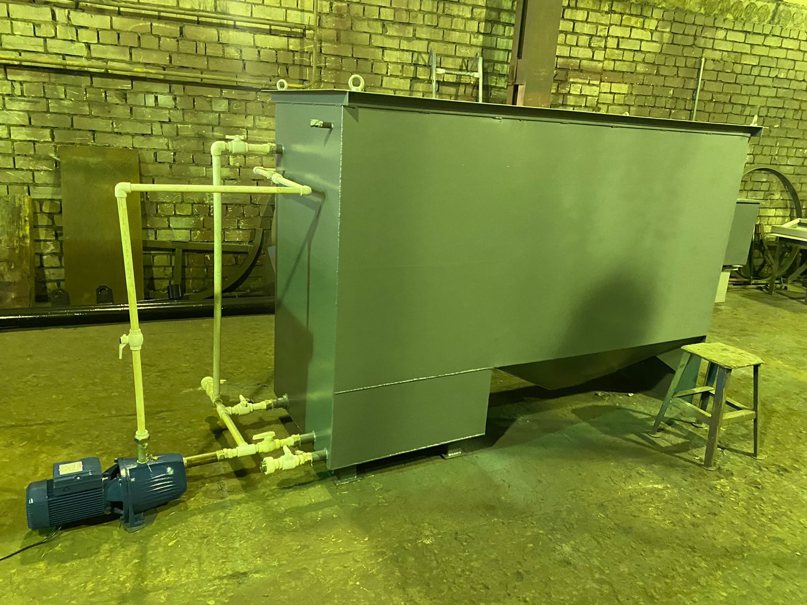 Из приямка они перекачиваются насосом в блок очистки, где сточные воды проходят напорный флотатор и фильтр со сменной песчаной загрузкой и дренажем из фильтровальной ткани.